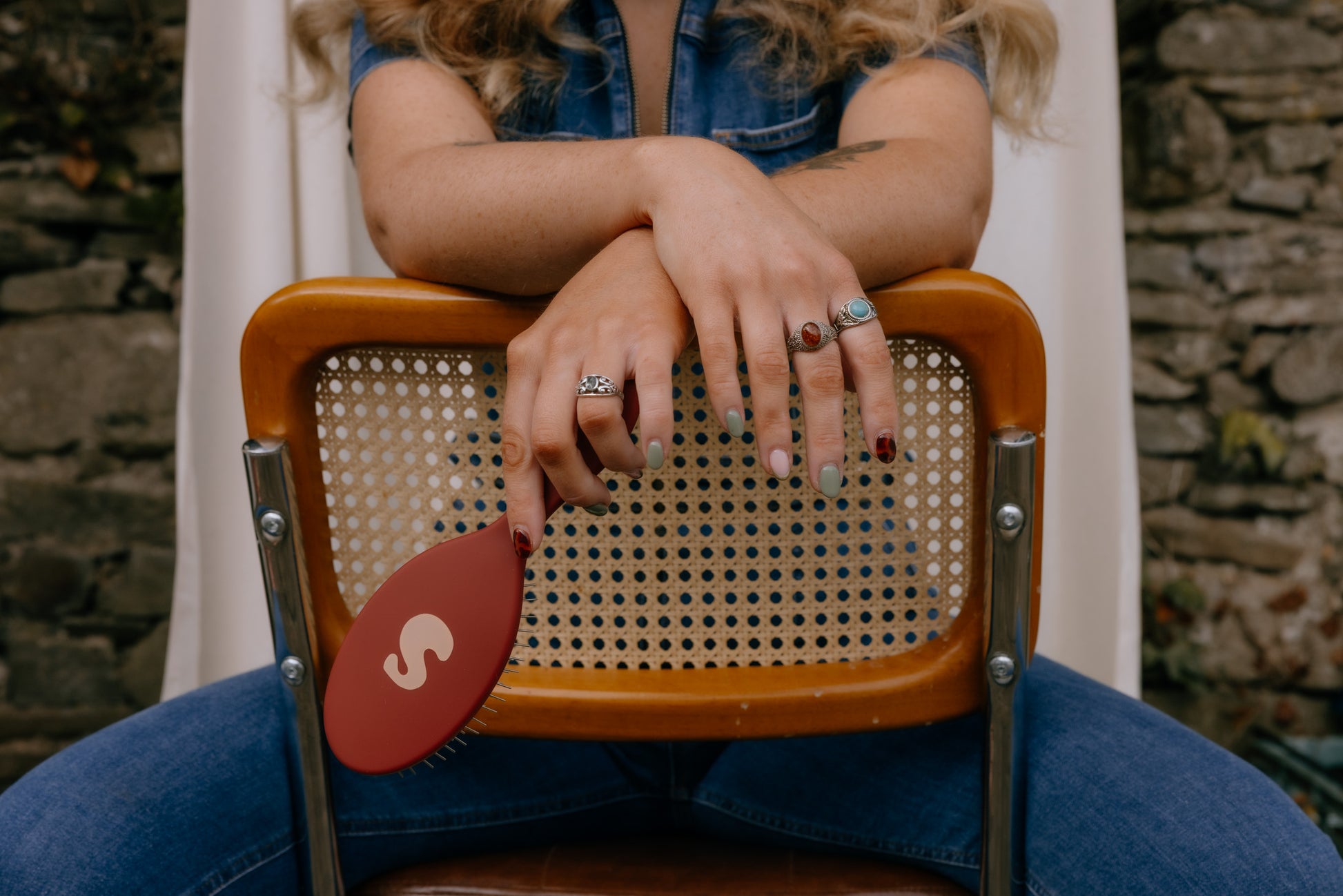 The Sassyy. Detangle Brush is designed to move with your flow. Featuring a textured, non-slip grip and durable metal bristles for smooth control and a feel-good scalp massage. Perfect for effortless blending at the basin or quick styling on the go.